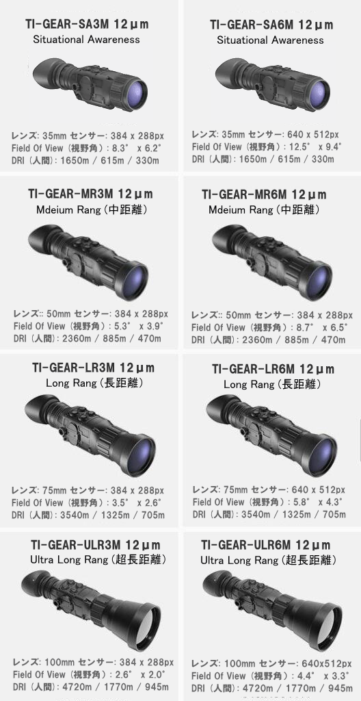 | 検出能力(D):人(1.7×0.5m)/ NATO標準ターゲット(2.3×2.3m) | 2360m / 3185m | |
